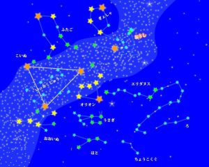 エリダヌス座:この星座は、オリオンの足元から右や左と流れ出て、川のようですが、その先がわからず、暗黒の世界が待ち受けているように不気味です。この川はエリダヌス、すなわち、さばきの川を意味しています。聖書を見ると、いたるところにさばきの川の描写があることに気づきます。預言者ダニエルは「火の川が流れ出ていた。」と表現しています。(ダニエル書7章10節)さばきの言葉は人類への警告だと思われます。しかし、一方で、愛なる神は最後の審判から永遠に逃れる道を備えておられます。それが救い主キリストを信じて救われる道です。それは慰めのオアシスである永遠のいのちの川に身をゆだねることなのです。