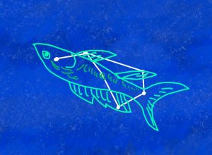 とびうお座:16世紀以降にできた星座です。船乗りたちが見たトビウオが珍しかったため、その姿を星座にしたと伝えられています。キリスト教の象徴として魚の形のシンボルを用いられるようになった理由はいろいろあるとされています。その1つが、弟子たちの多くが漁師であったことがあげられます。弟子のペトロは、イエス・キリストに「あなたは人間をとる漁師になるのだ。」と言われ、それにしたがったと聖書にでてきます。また復活されたイエスにしたがって網をあげると153匹の魚がとれた話もあります。