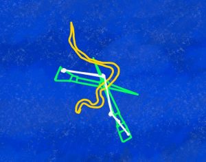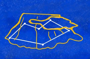 ちょうこくぐ座:フランスの天文学者ラカイユによって考えられた星座です。ハサミのように見えるちょうこくのどうぐをイメージした星座絵になっています。聖書には,人間は神様に似せて作られたという記述がでてきます。ちょうこくぐは、ちょうこくをつくるときの道具ですが、人間がつくられたことを思い出させられるような気がします。