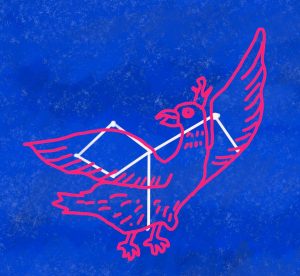くじゃく座:バイエルが設定した新しい星座です。クジャクは日輪を象徴しています。このことから不死のしるしにもなっています。そこから永遠のいのちを連想させられます。しかし、くじゃくの羽が豪華に見えることから、「傲慢」の象徴とされている部分がありました。ヘビを食べるので悪を滅ぼす鳥とされていたところもあります。
