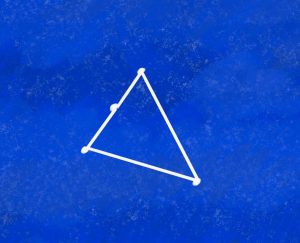 みなみのさんかく座:南半球から見える星座。新しい星座なので神話などはないようです。コンパス座とならんでおり、文房具の名前のついた星座も多いです。日本から見えるさんかく座よりも、やや大きく、正三角形にちかい形をしています。父なる神とイエスと聖霊の3つを連想させる形です。