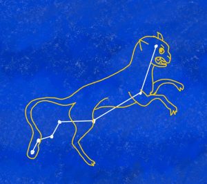 こじし座:ヘベリウスによって設定された星座です。おおぐま座としし座の間で輝いています。ダニエル書では、ダニエルがししのいる穴になげいれられるが、ししに害されることなく過ごし、助け出される話がでてきます。ダニエルには、「神は私の裁判官である」という意味があるそうです。ダニエル書は預言の書としても有名です。