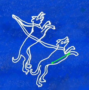 りょうけん座:比較的新しい星座です。聖書では、金持ちと貧乏人のラザロのたとえに犬が登場します。犬がやってきてラザロのできものをなめた話です。(ルカによる福音書16章21節)また、マタイによる福音書には、女が「主よ、ごもっともです。しかし、子犬も主人の食卓から落ちるパン屑はいただくのです。」と言い、その後イエスは、女の人の娘の病気をいやされる話にも犬は登場します。りょうけんではありませんが、このように聖書では、犬等の動物もよくでてきます。(マタイによる福音書15章27節)